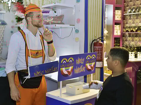 American Matthew Bassuener, 32, at the UK pavilion, has picked up Arabic thanks to his customers. “I sell whacky whistles and crochet mermaid blankets. A mermaid blanket is called Hooriyat Al Bahr Bithania in Arabic and it is priced miya khamsa wa talateen (Dh135). I can say numbers up to a thousand in Arabic.”