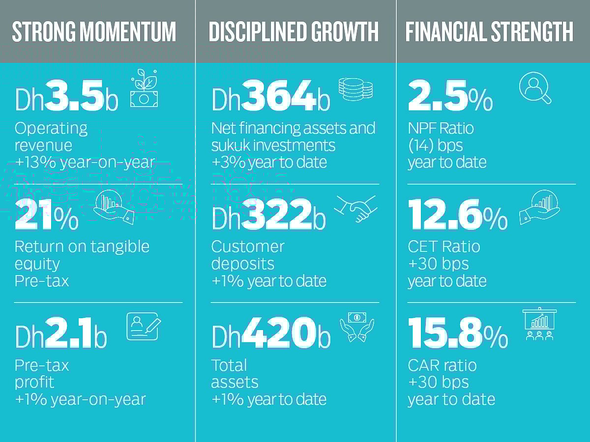 DIB, the largest Islamic bank in the UAE by assets, recorded operating revenues of Dh3.5 billion for the first quarter of 2026, a 13 per cent year-on-year (YoY) growth, while total assets reached Dh420 billion.