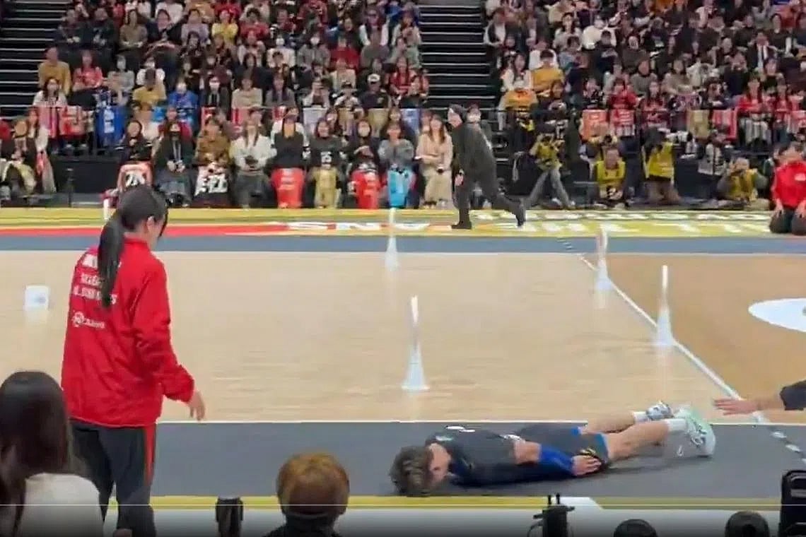 He was competing in a halftime serving challenge at a volleyball all-star event in Kobe, western Japan, when his left-handed serve went wide and hit a female judge squarely in the back, leaving him visibly horrified.