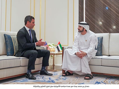 Dubai: Sheikh Hamdan Bin Mohammed bin Rashid Al Maktoum, Crown Prince of Dubai and Chairman of The Executive Council of Dubai, on Thursday met with Francis Suarez, the Mayor of the US city of Miami, at Expo 2020 Dubai.