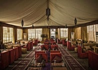 With red and green chairs and cosy sofas, the tent has an Ottoman hint and the lanterns dangling down along with those on each table, are the perfect arabesque touch.