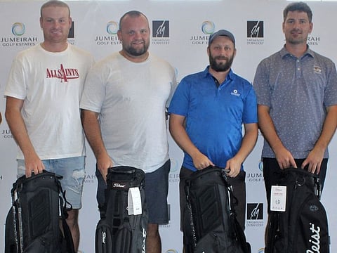 Jumeirah Golf Estates hosted a best-two-scores-from-four team event over the Fire Course on Saturday. Some golfers took part in 22 teams, enjoying thge perfect early Saturday morning weather for a shotgun start.