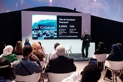 Thethi, however, painted a more sobering picture. He highlighted the tsunami of AI-generated websites, over 1,300 already identified by Newsguard, with no human editors in sight. “Since ChatGPT was launched in late 2022, AI-generated content has grown by 8,300%. Today, 74% of all websites are reportedly AI-generated,” he said.