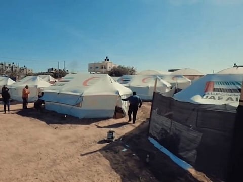 Abu Dhabi: Emirates Red Crescent (ERC) on Saturday completed setting up a 30-tent camp for displaced people in the Khan Younis area of Gaza.