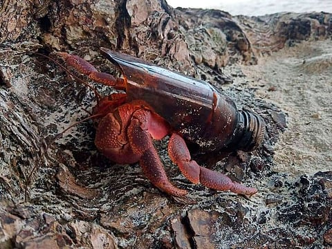 Some crabs, having outgrown their previous homes, have moved into pieces of rubbish such as cans, glass bottles or caps, and Veerasak said authorities had detected a shell shortage about a week ago.