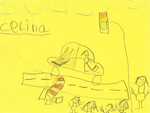 While Luis’s picture helped the police note that it was a black car, Celina’s picture showed how the woman driver hit the brakes and had onlookers gasping in surprise. She didn’t forget to add details of the crime scene, a broken barrier, stick figures of herself and her friends, and an adult who was with them.
